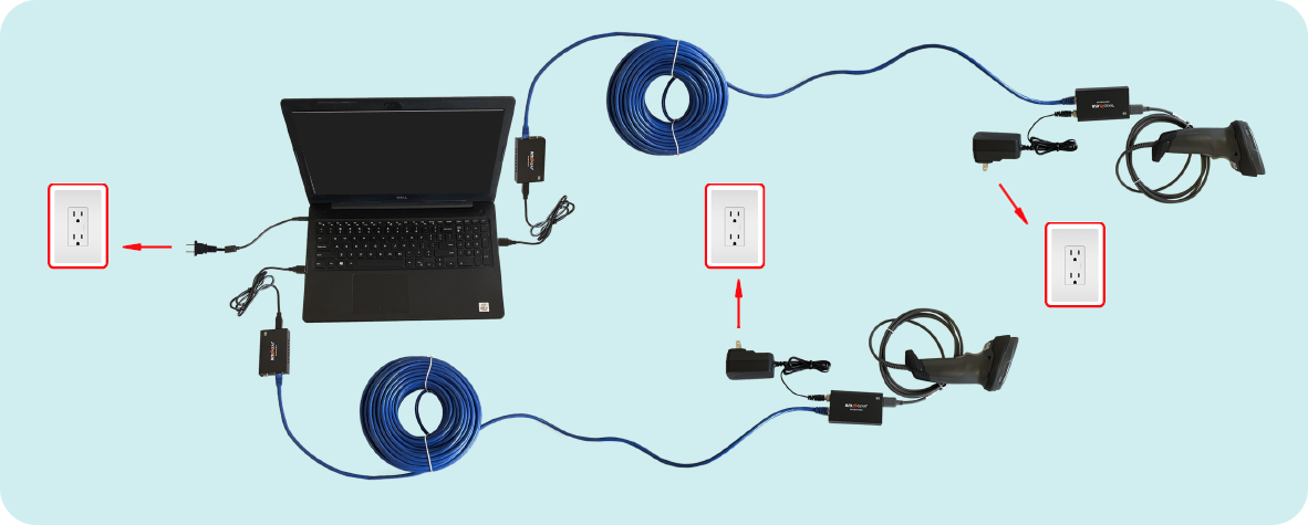 Note: We do not recommend running USB extension cords between your QR scanners to your powered-usb extender. This may cause delay connectivity or loss of connectivity altogether.